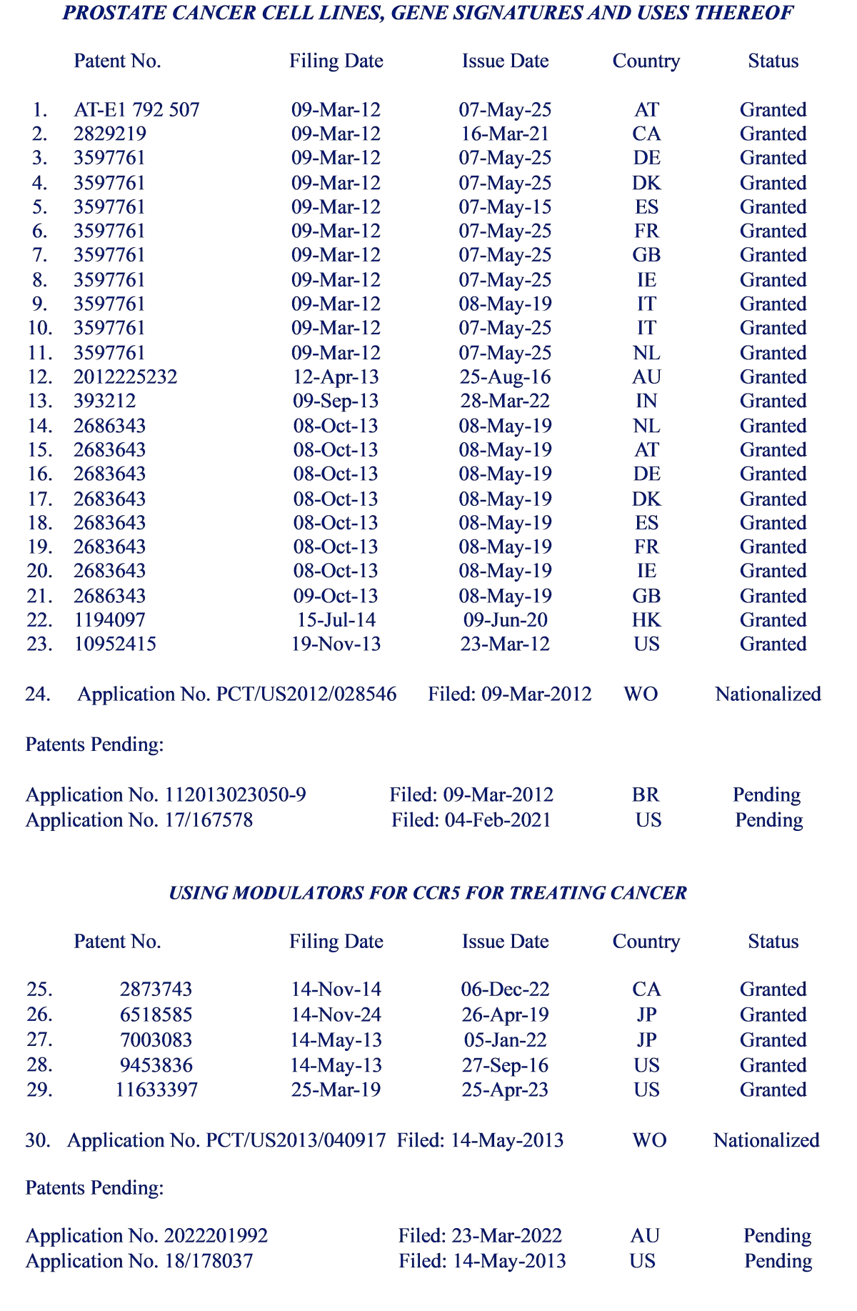 StromaGenesis owns a diversified portfolio of 30 issued patents (28 Granted & 2 Nationalized) and 4 Patent Pending; covering therapeutic and diagnostic applications, providing broad international protection across multiple disease areas.